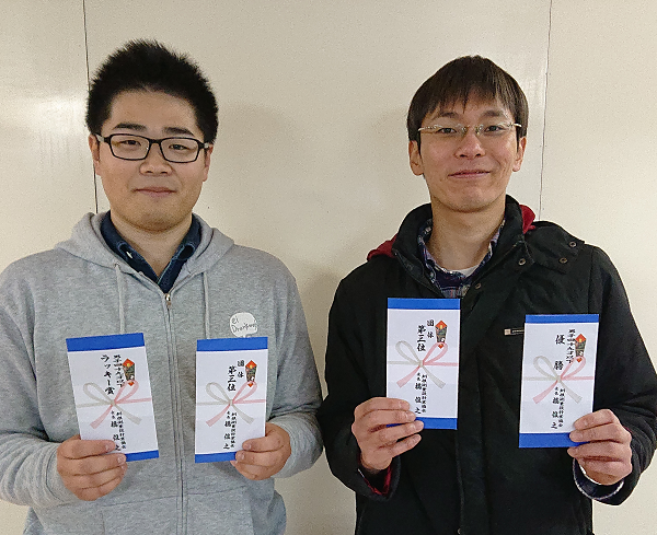 2月1日午後1時半より釧根測量設計業協会主催の親睦ボウリング大会が開催され、協会加盟の事業所から約70名が参加しました。当社からも5名の社員が参加し、心地よい汗を流しました。大会の結果は、団体の部で3位に入賞したほか、環境科学部の福田さん(写真右)が男子49歳以下の部で優勝、同じく環境科学部の湯浅さん(写真左)もラッキー賞をいただき、それぞれ表彰されました。
