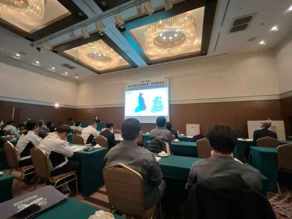 11月11日(火)午後1時30分よりANAクラウンプラザ釧路で釧根測量設計業協会主催の令和7年度技術発表会が開催され、会員企業の社員など約80名が参加しました。今回の発表テーマは「生産性向上を目的とした各種業務での取り組み事例」となってており、このテーマに沿って協会会員企業から9名の技術者が取り組み事例を発表しました。当社からは設計企画部平次長と環境科学部寺澤課長代理の2名がそれぞれ発表を行いました。また、当社の若手社員を含む多くの社員が会場で他社の技術者による技術発表に耳を傾けていました。
